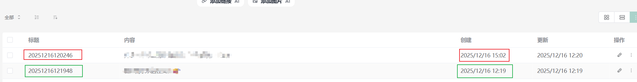 app使用的本地时间作为创建时间,更新时间采用的是服务器(+8区),所以可能会有差异